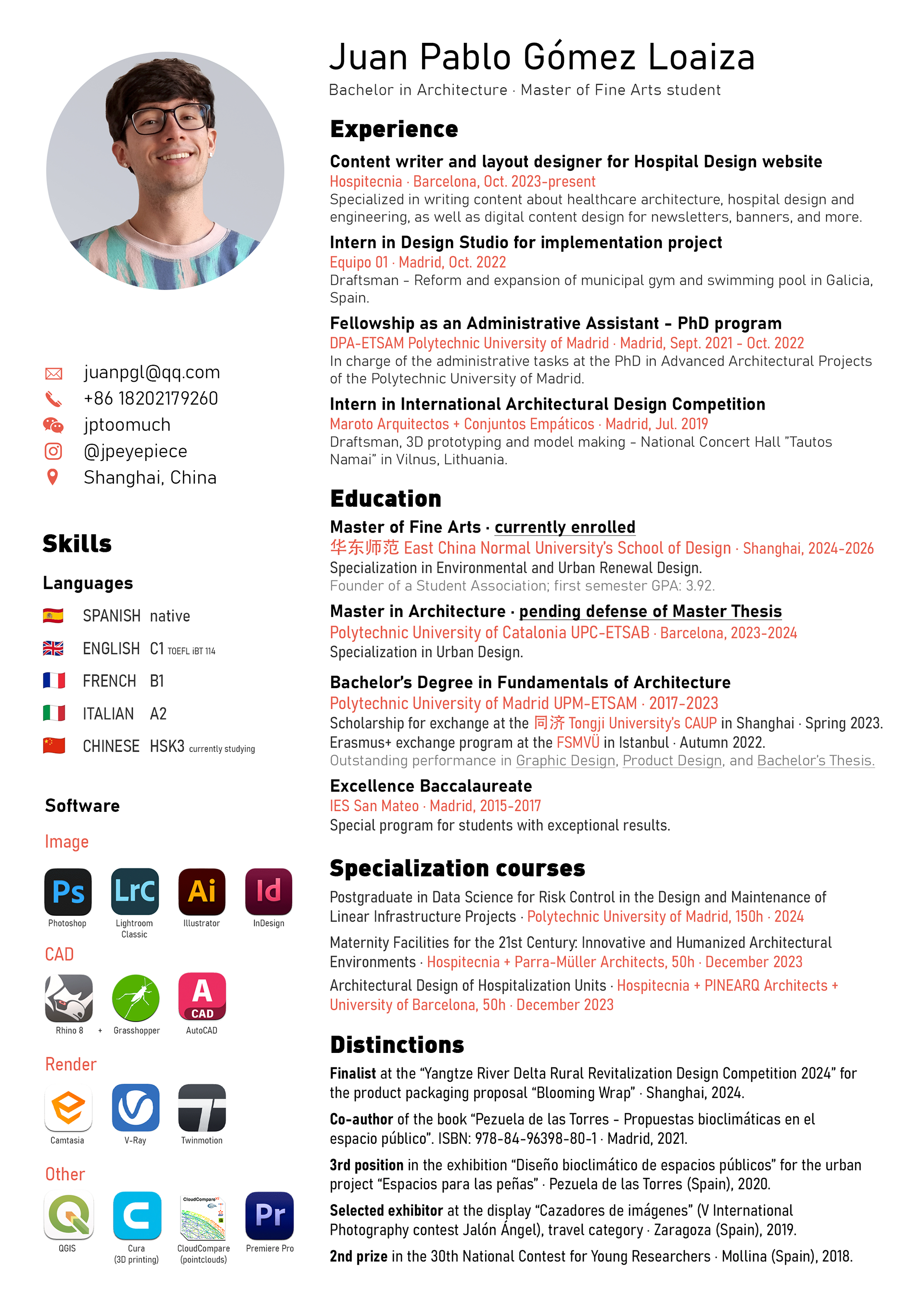 Bachelor in Architecture at UPM (Spain) Master of Fine Arts at ECNU (China)